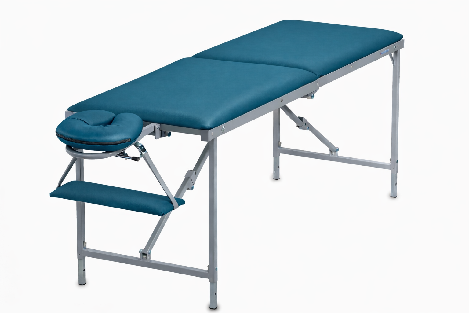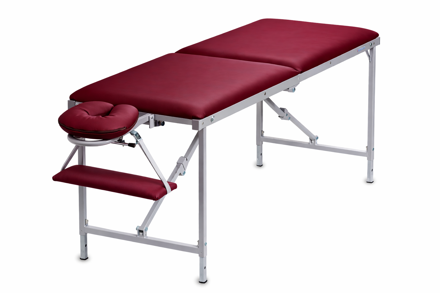 Som alla våra bärbara behandlingsbänkar är modell TE utrustad med endast två benpar. Därmed slipper man som terapeut att stöta benen i någonting när man behandlar.